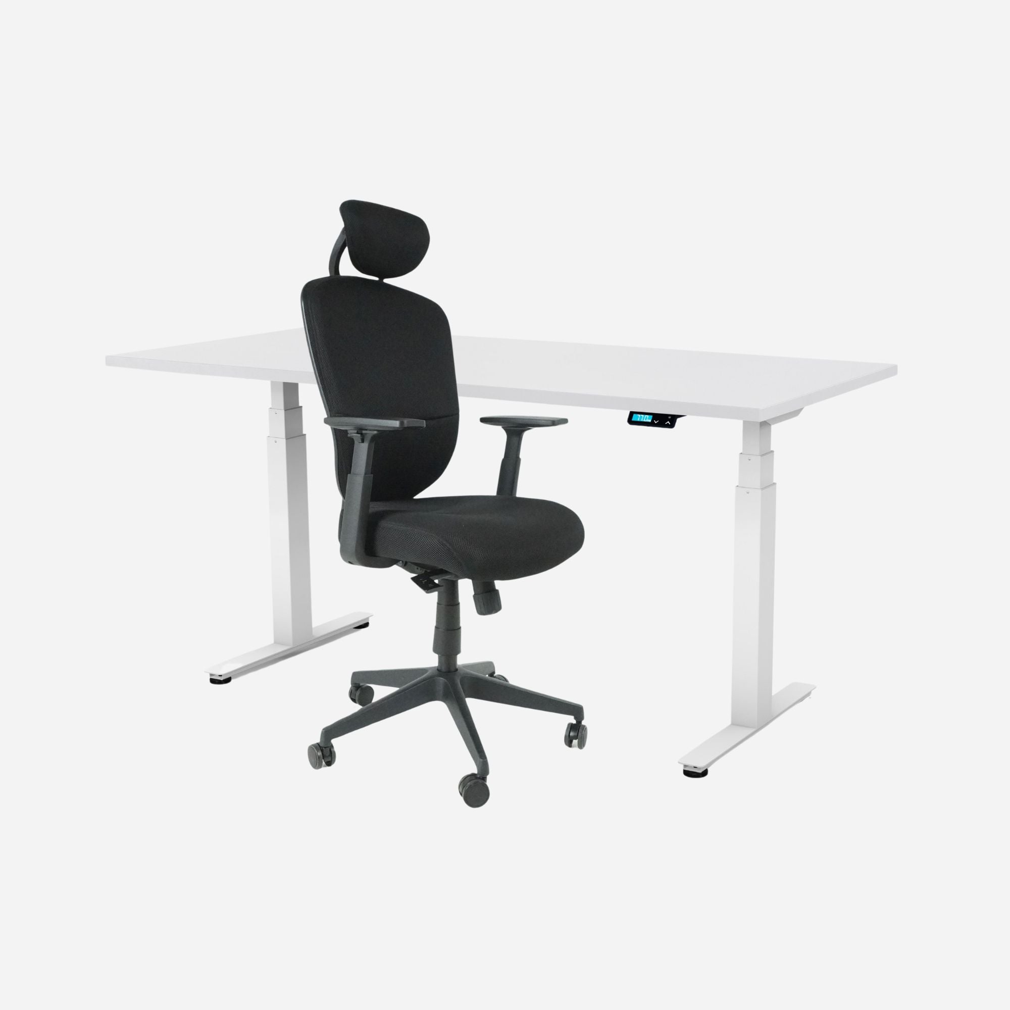 High-End Qualitätstisch mit vormontiertem Gestell für einen schnellen und unkomplizierten Aufbau - jetzt im Bundel mit dem WRK21 OFFICE - Dein ultimativer ergonomischer Büro-/Home Office-Drehstuhl.